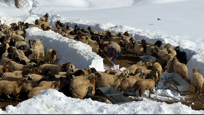 Hayvanlarını beslemek için mesaisinin erken saatlerde başladığını belirten Er, “Keçilerimi besliyorum. Bunun için sabah erkenden işe koyuluyoruz. Yollar kapalı olduğu için otu sırtlayarak götürüyorum. Eskiden çok daha zordu. Yine de işimi severek yapıyorum” dedi.