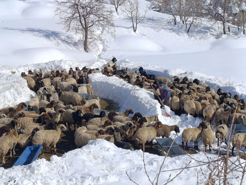 İki gün üst üste yağan yoğun kar nedeniyle evlerinden çıkamaz duruma geldiklerini belirten Bedirhan Gül de yaklaşık 150 küçükbaş hayvanı için evinin yanındaki alanda 2 metreyi bulan karı ezerek yemleme yapabildiklerini anlattı.