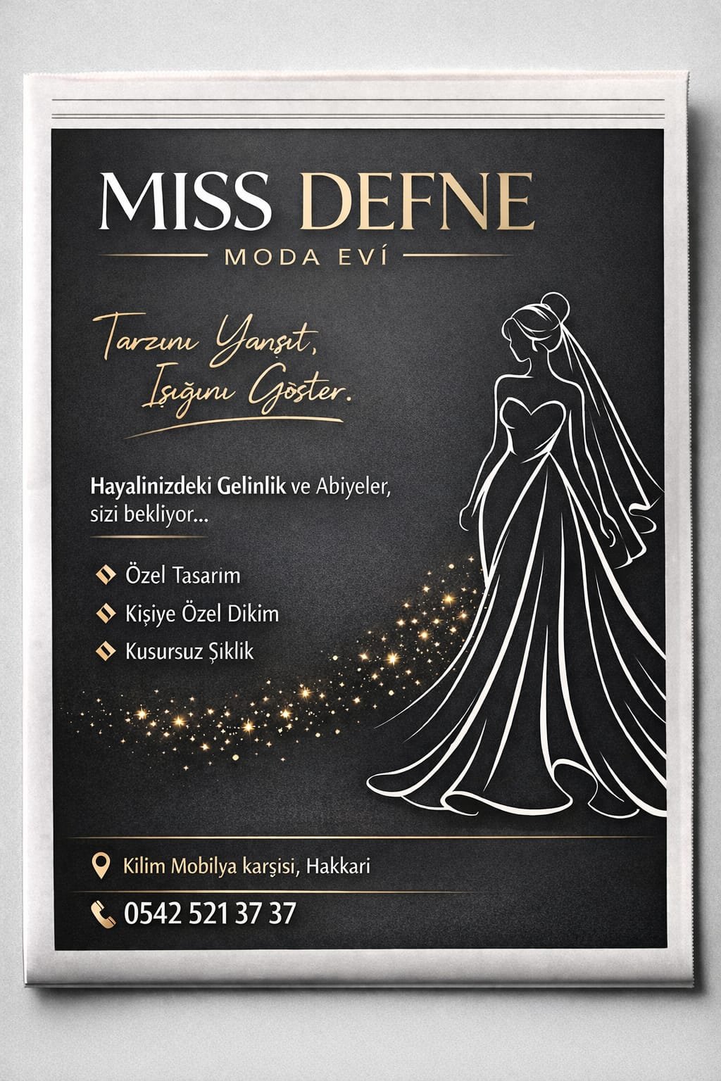 Hakkari’de yıllardır güvenin ve şıklığın adresi olmayı sürdüren Miss Defne Moda Evi, yeni sezon modelleri, profesyonel hizmet anlayışı ve müşteri memnuniyetine verdiği önemle bu yıl da gelin adaylarının ilk tercihi olmaya devam edecek.