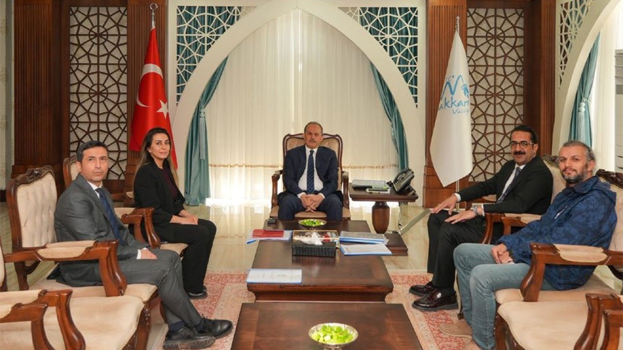 HAKKARİ - İl Kültür ve Turizm Müdürü İdris Ağacanoğlu, Van Kültür Varlıklarını Koruma Bölge Kurulu Müdürü Necmeddin Bayhan, Rölöve ve Anıtlar Müdürü Mukadder Eren ile Güvenlik Korucusu (Sanat Tarihçi) Musa Özatak, Hakkari Valisi İbrahim Taşyapan’ı makamında ziyaret etti.