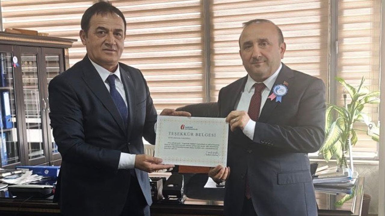 Yakuopoğlu’na teşekkür belgesi, Hakkâri Defterdarı Mesut Çalışır ile Hakkari Vergi Dairesi Müdürü Gülten Yıldırım tarafından iş yerinde gerçekleştirilen ziyaret sırasında takdim edildi.