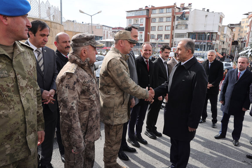 Valilik binası önünde düzenlenen karşılama törenine Hakkari Vali Vekili Cüneyt Orçun Zor, Recep Gündüz, Mehmet Faruk Saygın İl Jandarma Komutanı Tuğgeneral Cafer Öz, İl Emniyet Müdürü Attila Ayata, Derecik Belediye Başkan Vekili Mesut Tekin, Hakkari Belediye Başkan Yardımcısı Hikmet Yaşar, Durankaya Belediye Başkanı İsmail Demirci, AK Parti İl Başkanı Zeydin Kaya, ilçe kaymakamları, kurum müdürleri, siyasi parti temsilcileri katıldı.