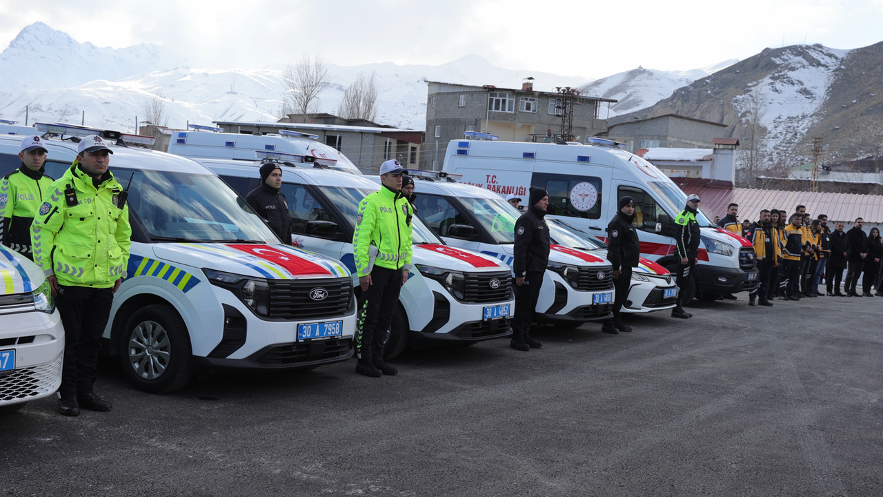 Hakkari'de emniyet ve jandarma teşkilatı ile İl Sağlık Müdürlüğüne tahsis edilen 40 yeni araç ile 5 ambulans düzenlenen törenle teslim edildi. Araçların teslim edilmesi için Fatih Kışlası'nda düzenlenen tören, saygı duruşunda bulunulması ve İstiklal Marşı'nın okunmasıyla başladı.