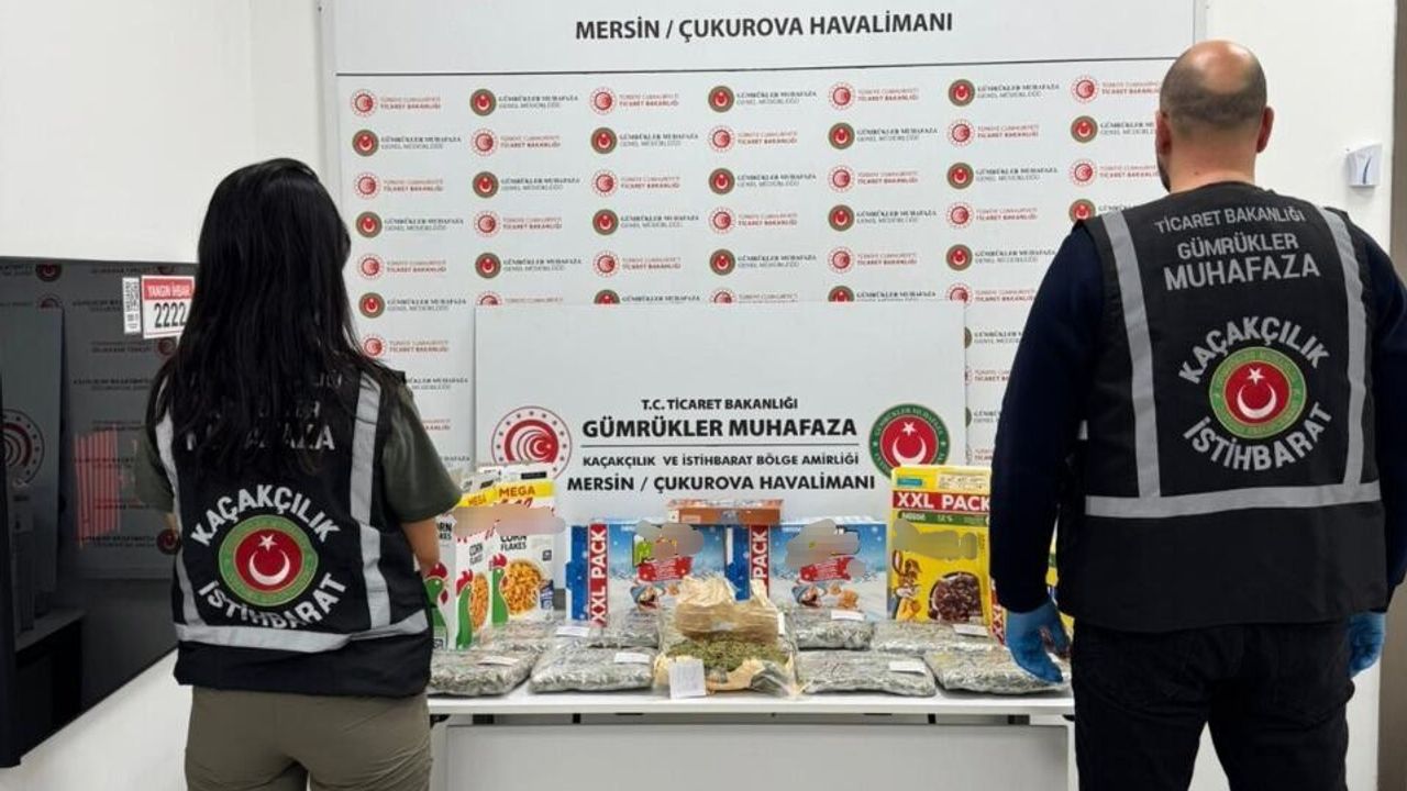 Arama sonucunda mısır gevreği paketleri içine gizlenmiş bir şekilde 10 paket halinde 4 kilo 510 gram esrar maddesi ele geçirildi. Yabancı uyruklu şüpheli L.M. Tarsus Cumhuriyet Başsavcılığı talimatıyla gözaltına alındı.