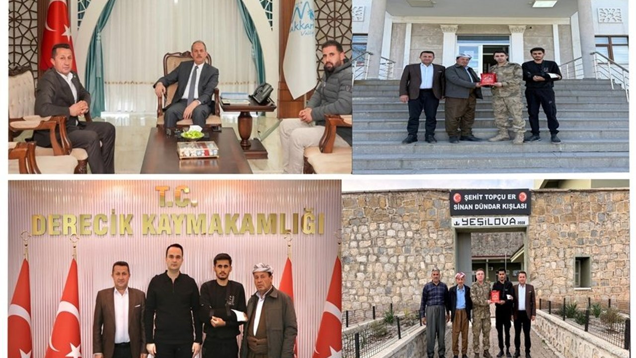 DERECİK- Heyet ilk olarak İbrahim Taşyapan’ı makamında ziyaret ederek desteklerinden dolayı teşekkür etti. Ardından Sezai Demirci ve İlçe Jandarma Komutanı Burak Kılıç, Derecik Yeşilova 1. Hudut Tabur Komutanı Piyade Kurmay Albay Kıvanç Köseoğlu,Jandarma Asayiş Bölük Komutanı Üsteğmen Ayhan Karadağ' ziyaret etti.