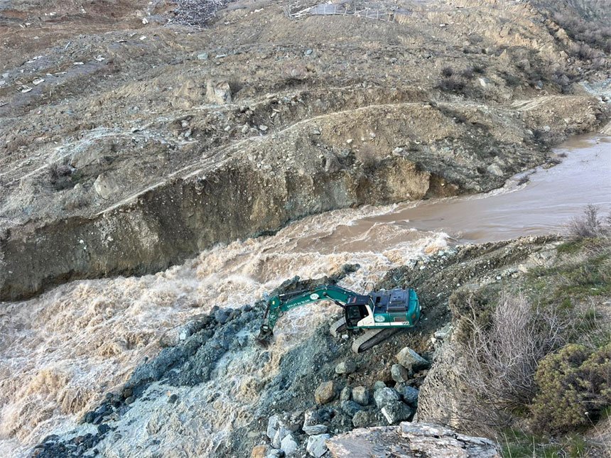 Heyelan sonucu Zap Suyu’nun doğal akış rejimi olumsuz etkilenirken, suyun kontrolsüz yayılımı taşkın riskini de beraberinde getirdi. Bu kapsamda DSİ ekipleri, suyun kontrollü şekilde yönlendirilmesi amacıyla geçici derivasyon ve tahliye kanalları oluşturdu.