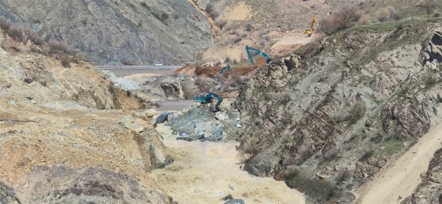 Ulaşıma kapanan güzergâhın yeniden işler hâle getirilmesi için alternatif yol yapım çalışmaları da eş zamanlı olarak devam ediyor.