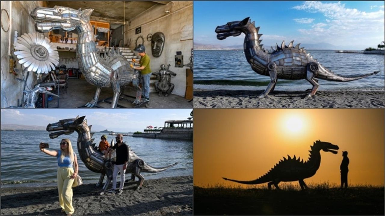 Sıfır Atık Projesi'ne verdiği destekle tanınan Mutii, hurdacılardan topladığı demir parçalarından "Van Gölü Canavarı" heykeli yapmaya karar verdi.