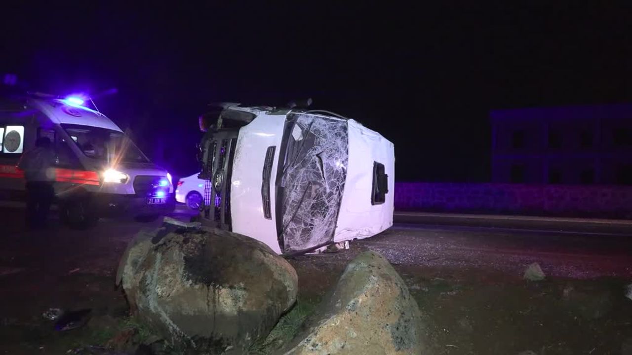 Öte yandan minibüsün, sürücünün yola çıkan sahipsiz köpeğe çarpmamak için manevra yaptığı sırada devrildiği ileri sürüldü.
