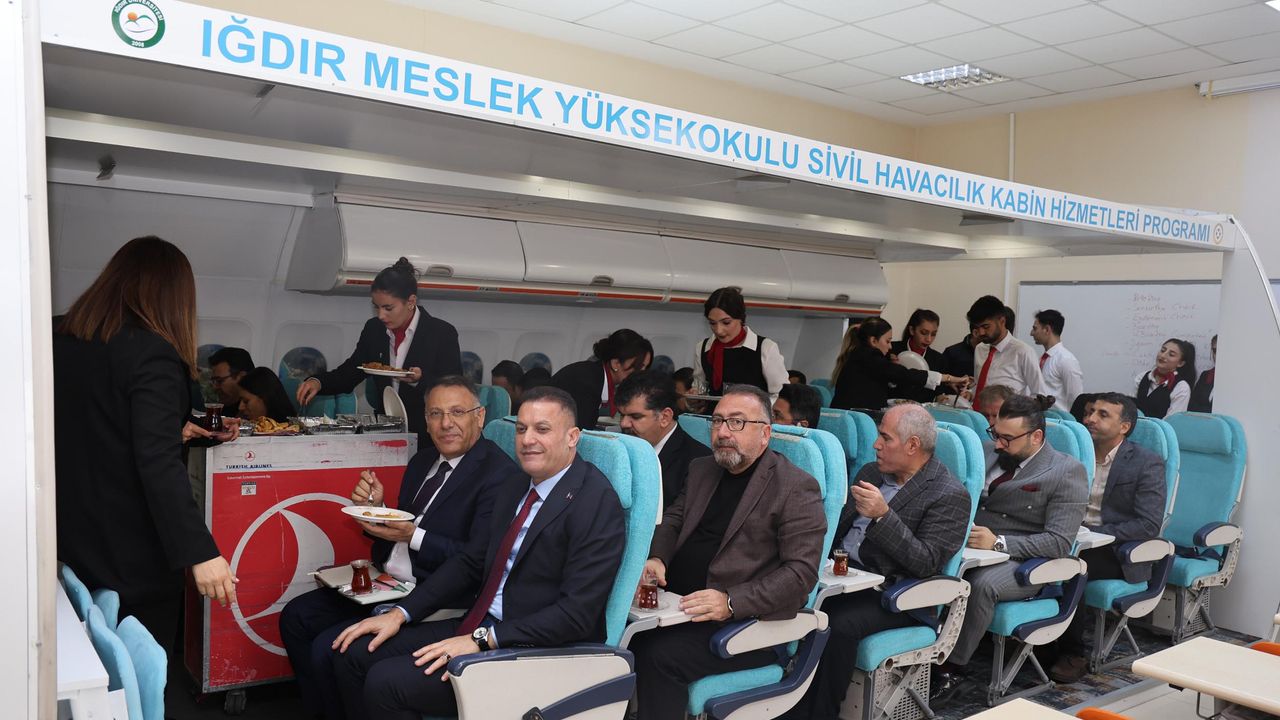 Iğdır Üniversitesi Rektörü Prof. Dr. Ekrem Gürel, Iğdır Şehit Bülent Aydın Havalimanı Müdürü Fikret Bağca ile Havacılık Yönetimi bölümündeki Uçak Kabin Simülasyon (Mock-Up) sınıfını ziyaret etti. Ziyarette, öğrencilerin sektörel pratik becerilerini geliştirmeye yönelik kullanılan simülasyon ortamı hakkında detaylı bilgiler alındı. Personel ve öğrencilerle de sohbet eden Prof. Dr. Ekrem Gürel, kabin görevlisi gibi İngilizce anons yaptı. Rektör Gürel ve beraberindekiler, daha sonra tıpkı bir uçakta seyahat eder gibi öğrencilerin yaptığı simülasyonu izledi.