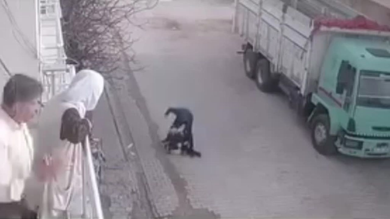 Görüntüde, A.K'nin sokakta gördüğü kadını darbettiği, yere düşen ve zarar gelmesin diye kucağındaki bebeğe sarılan kadına yumruk atmaya devam ettiği görülüyor.