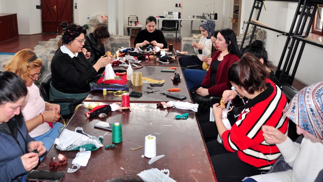 Usta öğretici Perihan Ulusoy ise kurs programının yaklaşık 3 hafta sürdüğünü ifade ederek, “Eğitimlere temel tekniklerle başladık. Önce iğne oyası ve nakış tekniklerini öğrendik ardından bebeklerin beden ölçülerine göre kalıplar çıkarıp kıyafetlerini tasarladık. Öğrencilerimiz teknikleri öğrendikten sonra kendi yorumlarını da katarak süslemelerini yaptı. Ürettiğimiz bebekler tamamen el işlemesi olup, Türk Anadolu motifleri iğne oyası ve sarma teknikleriyle uygulanıyor” diye konuştu.