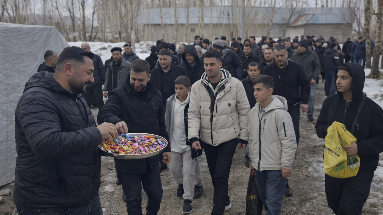 Bir araya gelen köylüler, geçmiş bayramları anarak geleneklerini gelecek nesillere aktarmanın mutluluğunu yaşadı. Köylüler, bayramlaşmak için gittikleri evlerde zaman zaman şeker kuyruğuna da girdi.