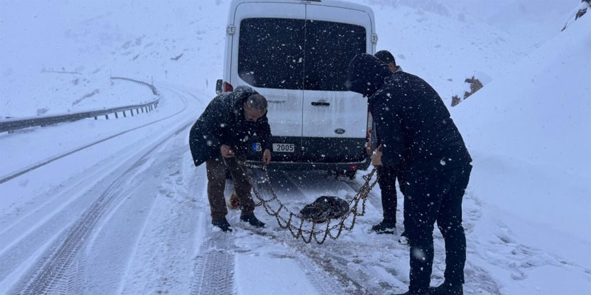 Yetkililer, sürücüleri zorunlu olmadıkça trafiğe çıkmamaları, araçlarında kış lastiği, zincir, takoz ve çekme halatı bulundurmaları konusunda uyardı.