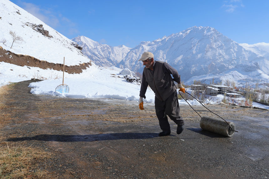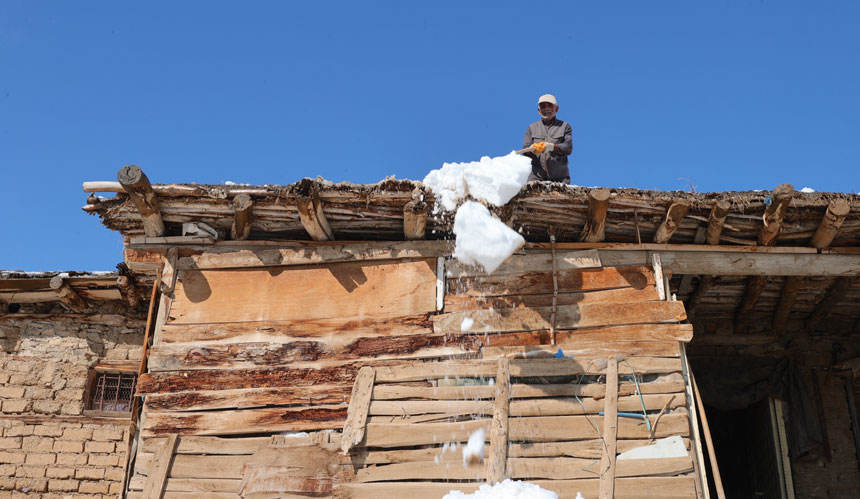 Objektifine yansıyan karelerden birinde, yaşlı bir vatandaşın ahırının damındaki karı temizlerken görüntülenmesi hem günlük yaşamın sıcaklığını hem de kışın getirdiği geleneksel ritüelleri yansıtıyor.
