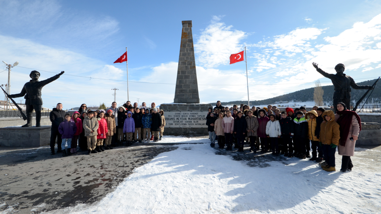 Tarih öğretmeni Bahattin Kılıç, şehitliklerde öğrencilere Sarıkamış Harekatı'nı anlattı, dualar edildi.