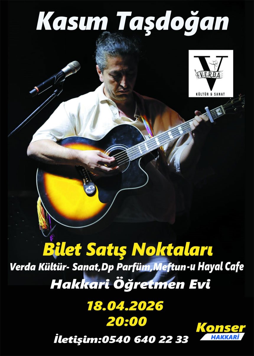 HAKKARİ – Kasım Taşdoğan, Hakkari’de müzikseverlerle buluşmaya hazırlanıyor. Sanatçının vereceği konser, 18 Nisan 2026 Cumartesi günü saat 20.00’de Hakkari Öğretmen Evi’nde gerçekleştirilecek.