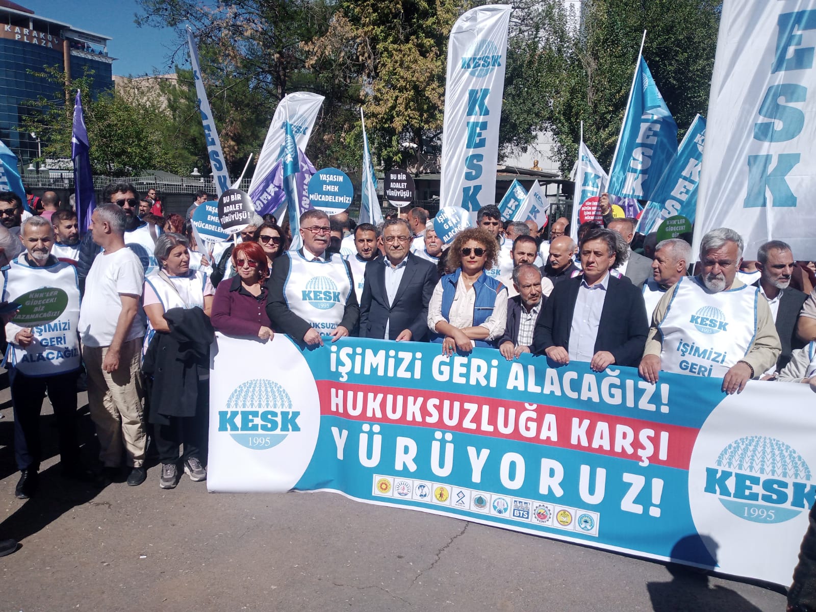 İhraç edilen KESK üyeleri derhal işlerine tüm özlük ve ekonomik haklarıyla birlikte iade edilmelidir. Savaşa karşı barışı, ölüme karşı yaşamı, tekçiliğe karşı çoğulculuğu, karanlığa karşı aydınlığı savunacağız. İşimizi geri alacağız!”