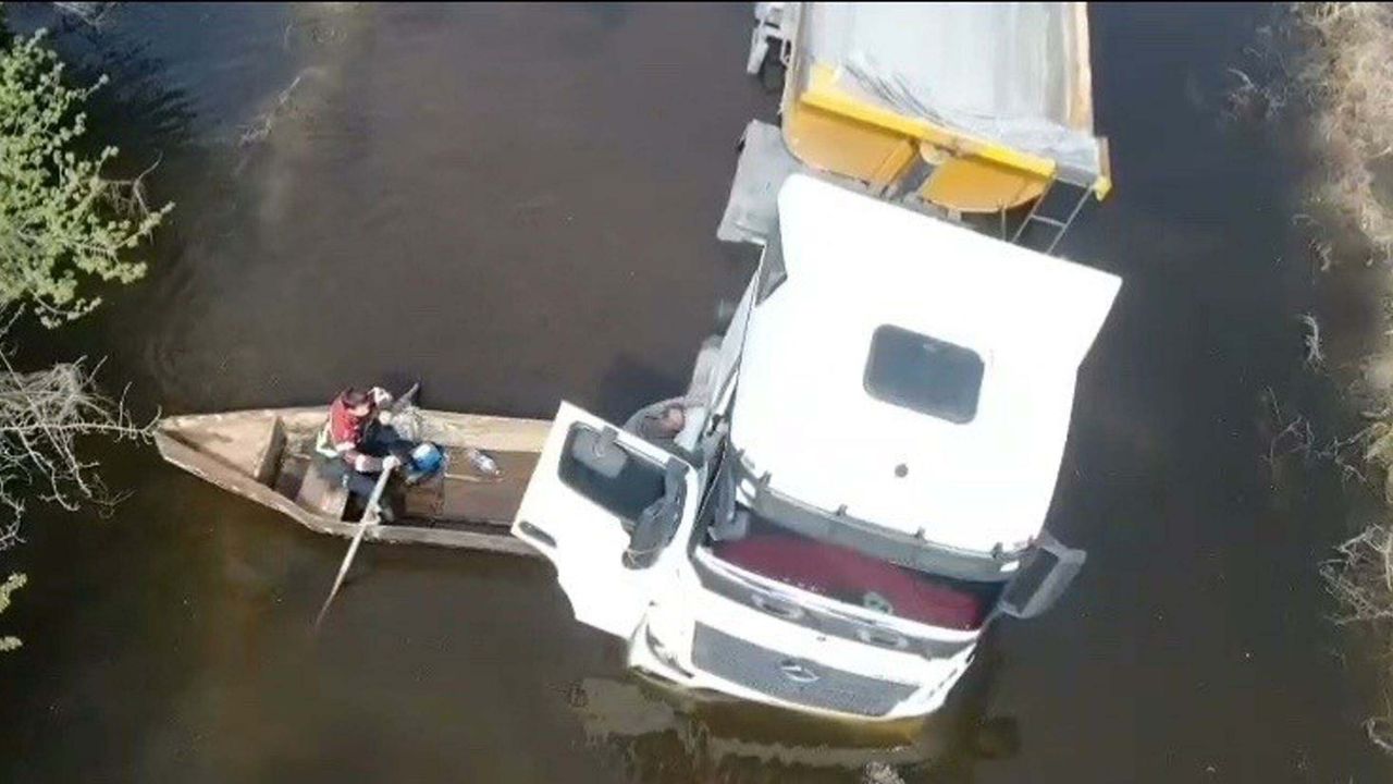 Şoför, araçta mahsur kaldı. İhbarla bölgeye Aydın Büyükşehir Belediyesi İtfaiye ekipleri sevk edildi. Taşkın sularının yolu kaplaması nedeniyle kara yolu ile ulaşım sağlayamayan ekipler, sandalla kurtarma çalışması başlattı. Ekipler, şoförü bulunduğu yerden alarak kurtardı. Kurtarma anları dronla görüntülendi.