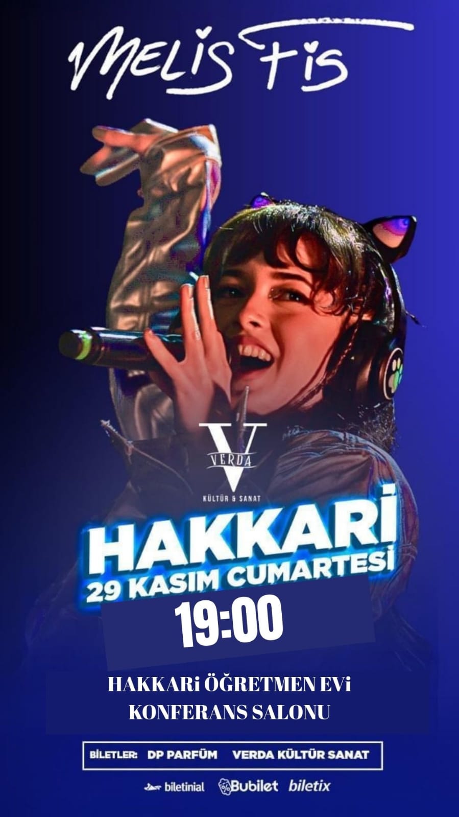 Kentte kültür ve sanat çalışmalarına aralıksız devam eden Verda Kültür ve Sanat Merkezi, bu kez Türkiye’nin yükselen seslerinden Melis Fis’i Hakkarililerle buluşturarak unutulmaz bir geceye imza atmayı hedefliyor.