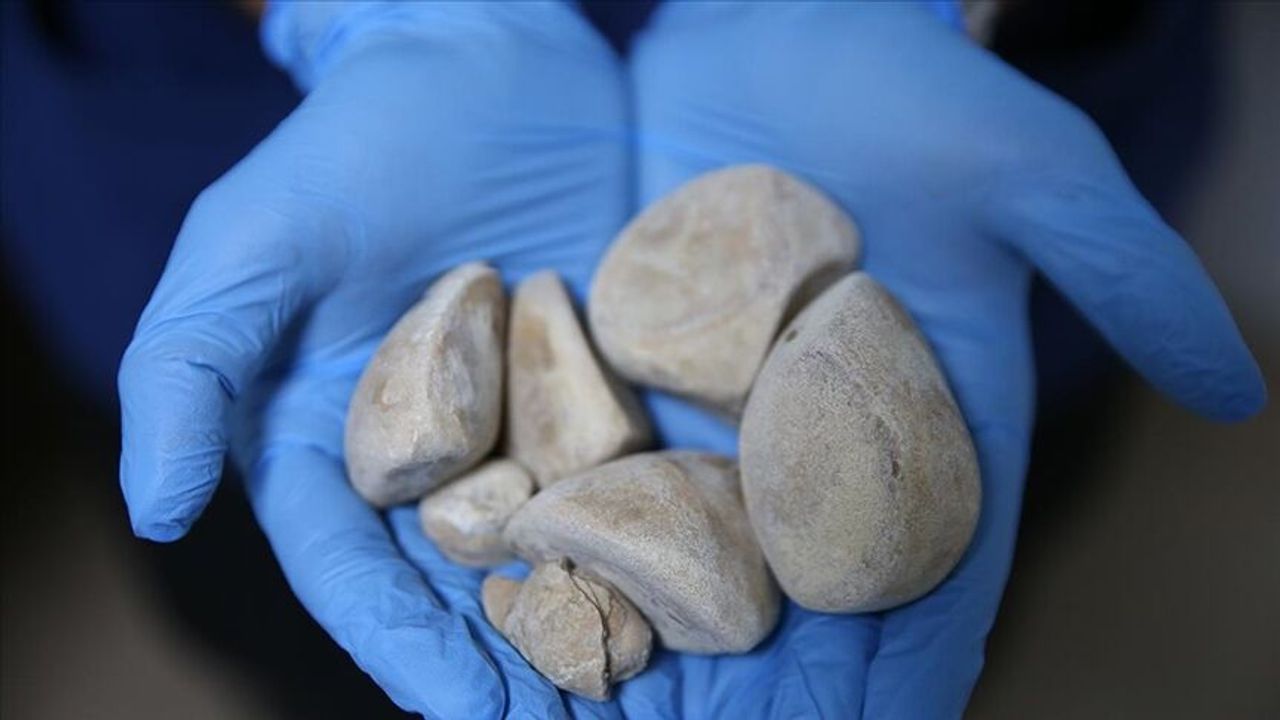 Bazı taşlar işlem sırasında kırılırken, taşların yaklaşık yarım kilogram ağırlığında olduğu belirlendi.