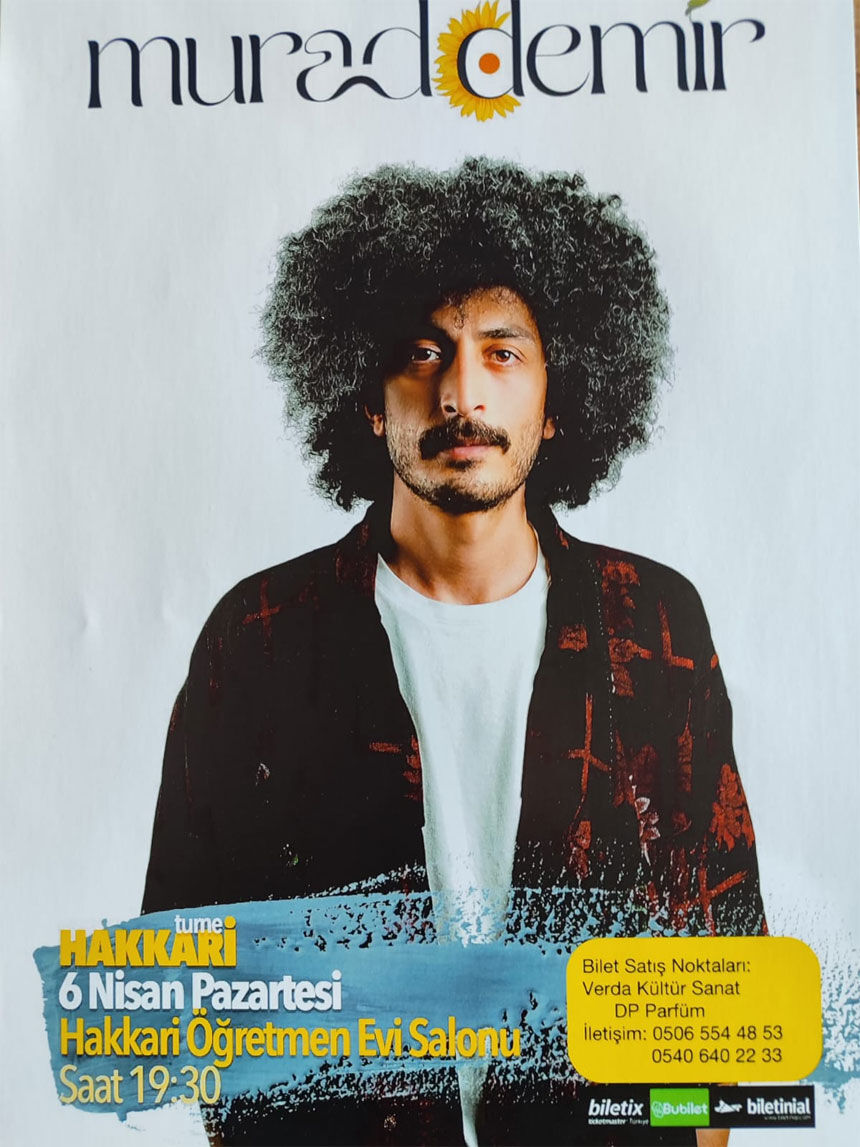 HAKKARİ – Hakkarili sanatçı Murat Demir V.E.R.D.A Kültür Sanat & Organizasyon Hizmetleri katkılarıyla 6 Nisan’da Hakkari’de sahne alacak.