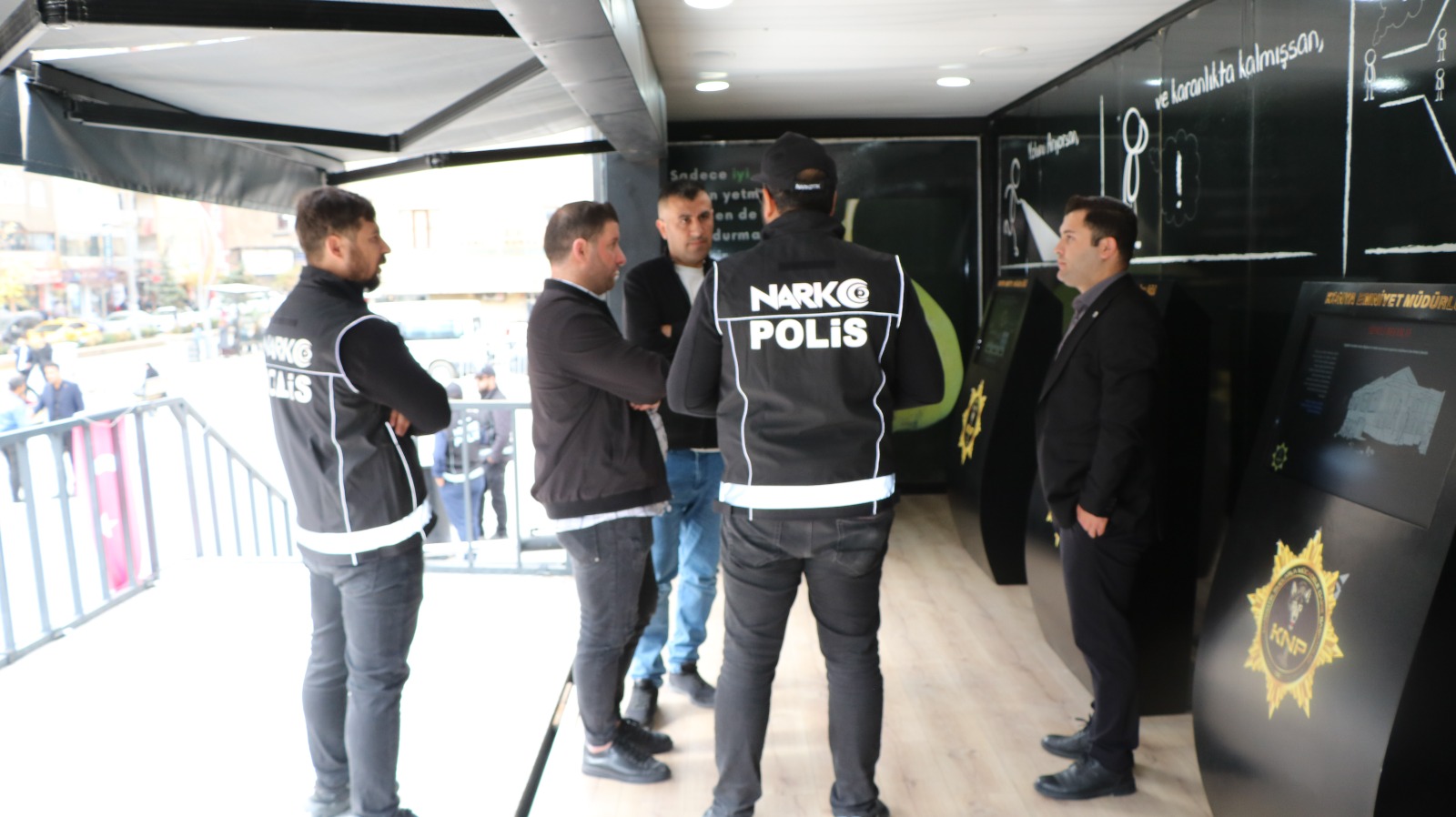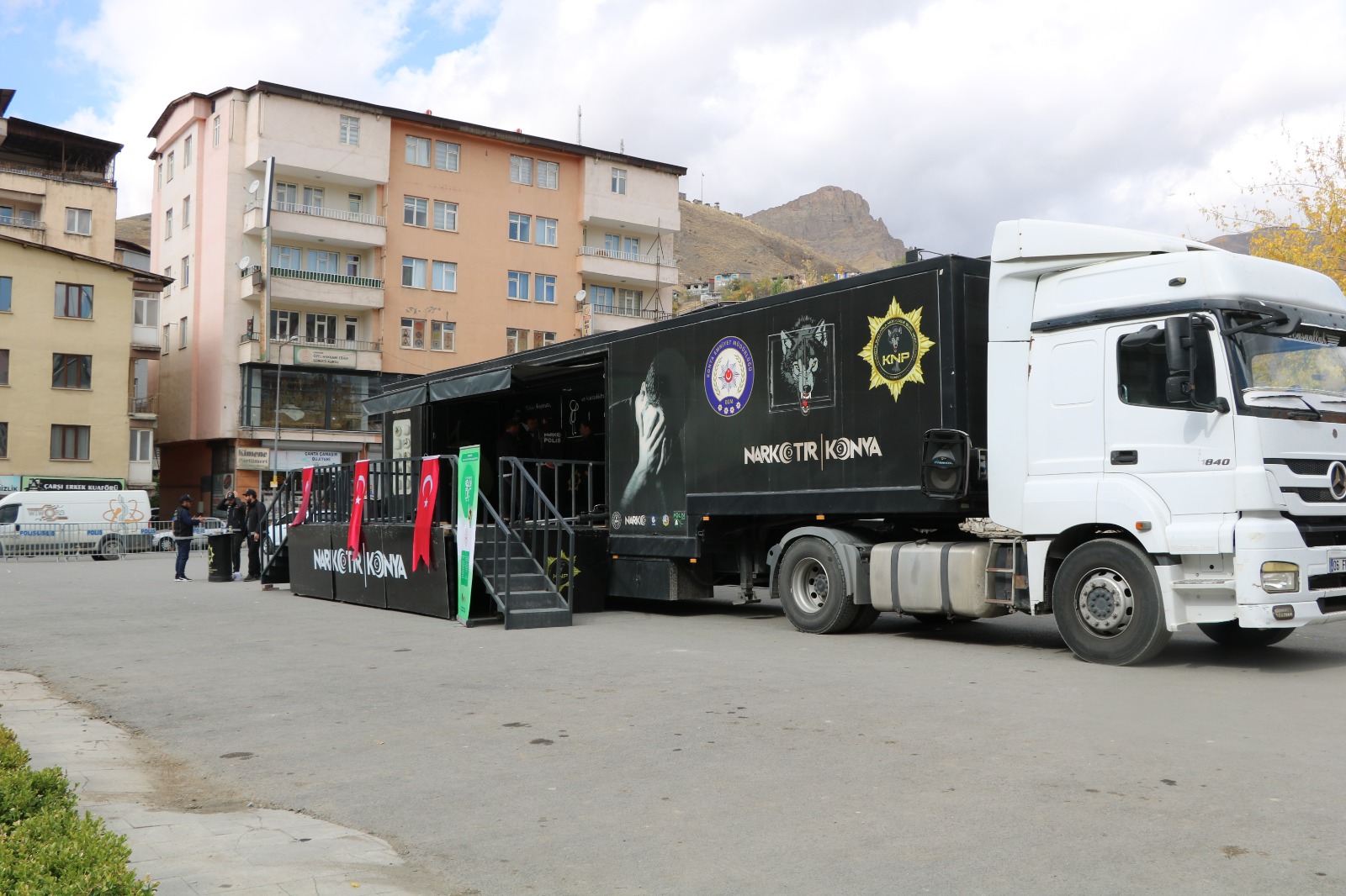 HAKKARİ- Bu kapsamda Konya’dan gelen 'Narko Tır', Bulak Mahallesi Bulvar Caddesi’nde, eski belediye hizmet binası önünde bilgilendirme standı kurdu.