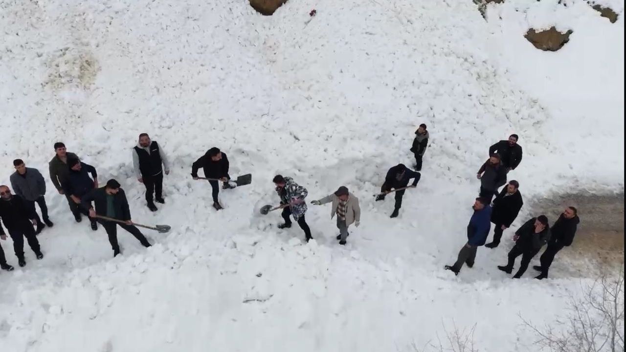 Çığı fark eden sürücüler, araçları hızla geri çekip, bölgeden uzaklaştı. Yolun kapanması üzerine ekiptekiler, kendi imkanlarıyla küreklerle yolu açmaya çalıştı. Çalışma sırasında aynı yamaçtan ikinci kez çığ düştü. O anlar, ekip sorumlusu İlhan İler tarafından cep telefonu kamerasıyla kaydedildi. İler'in daha sonra dronla yaptığı çekimlerde ise ekip üyelerinin küreklerle yolu açma çalışmaları görüntülendi.