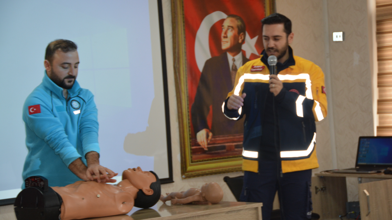 İlçe Sağlık Müdürlüğünce Atatürk Mesleki ve Teknik Anadolu Lisesi'nde eğitim programı düzenlendi. UMKE ve sağlık ekipleri, öğrencilere acil durumlarda yapılacak müdahaleleri uygulamalı olarak gösterdi.