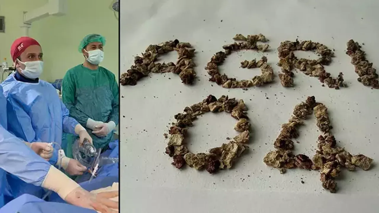Ağrı Eğitim ve Araştırma Hastanesi’ne müracaat eden Abdurrahman Bulut’un (57) böbreğinde taş olduğu belirlendi. Daha önce açık, perkütan ve endoskopik yöntemlerle toplam 21 kez taş ameliyatı geçiren Bulut’un böbreğinde toplam boyutu yaklaşık 6 santimetreyi bulan çok sayıda taş bulunduğu tespit edildi.