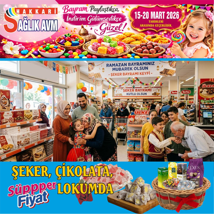 HAKKARİ – Hakkari’nin en taze, en sağlıklı ve güvenli alışveriş adresi Sağlık AVM, Ramazan Bayramı’na özel “Muhteşem Bayram Fırsatları” kampanyasını başlattı.