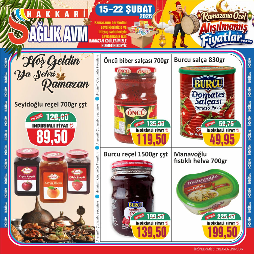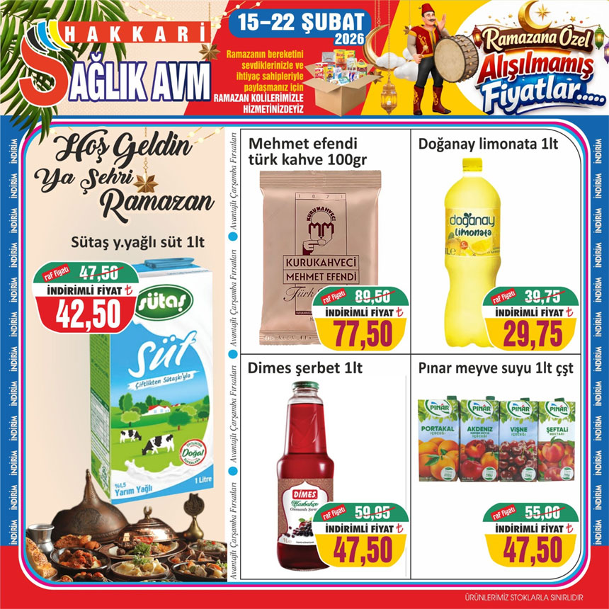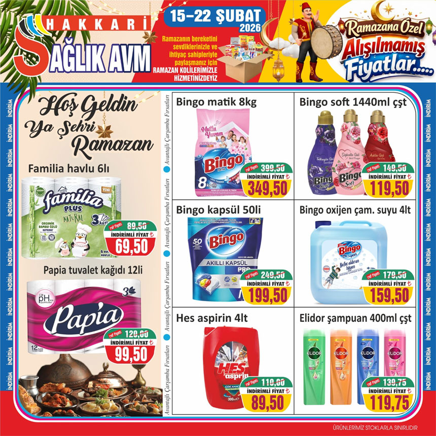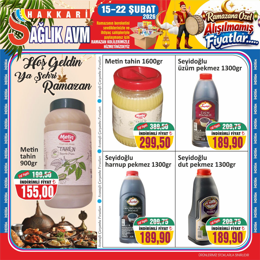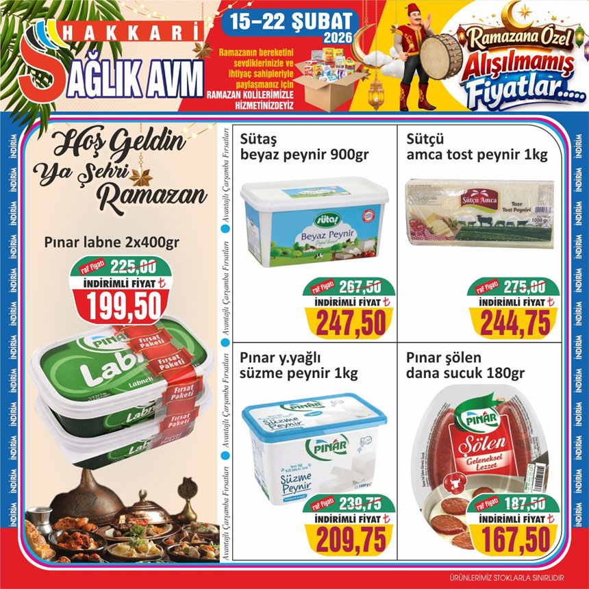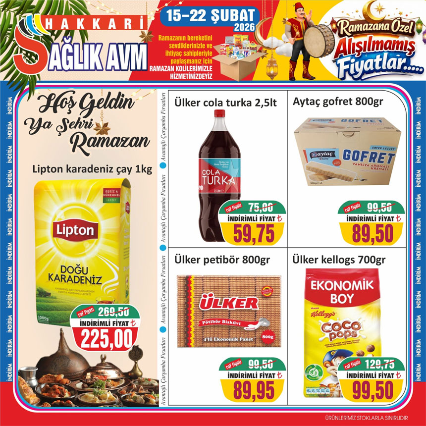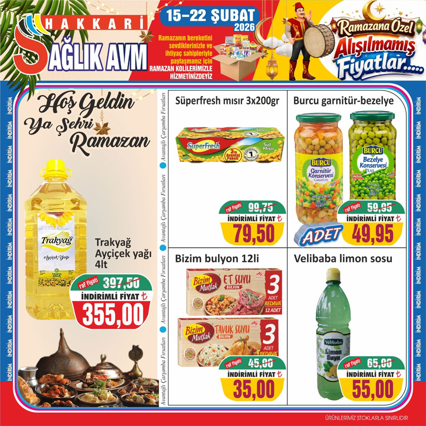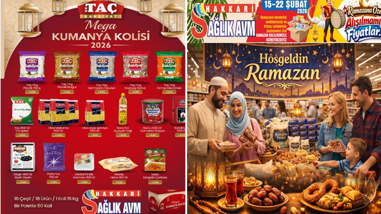 HAKKARİ – S.S. Sağlık Tüketim Kooperatifi bünyesinde hizmet veren Sağlık AVM, mübarek Ramazan ayı öncesi başlattığı indirim kampanyasıyla Hakkari halkını avantajlı alışverişe davet ediyor. “MEGA Kumanya Kolisi” ve “Ramazan Şenliği Evlerde Başlasın” sloganıyla duyurulan kampanya, 15–22 Şubat tarihleri arasında geçerli olacak.