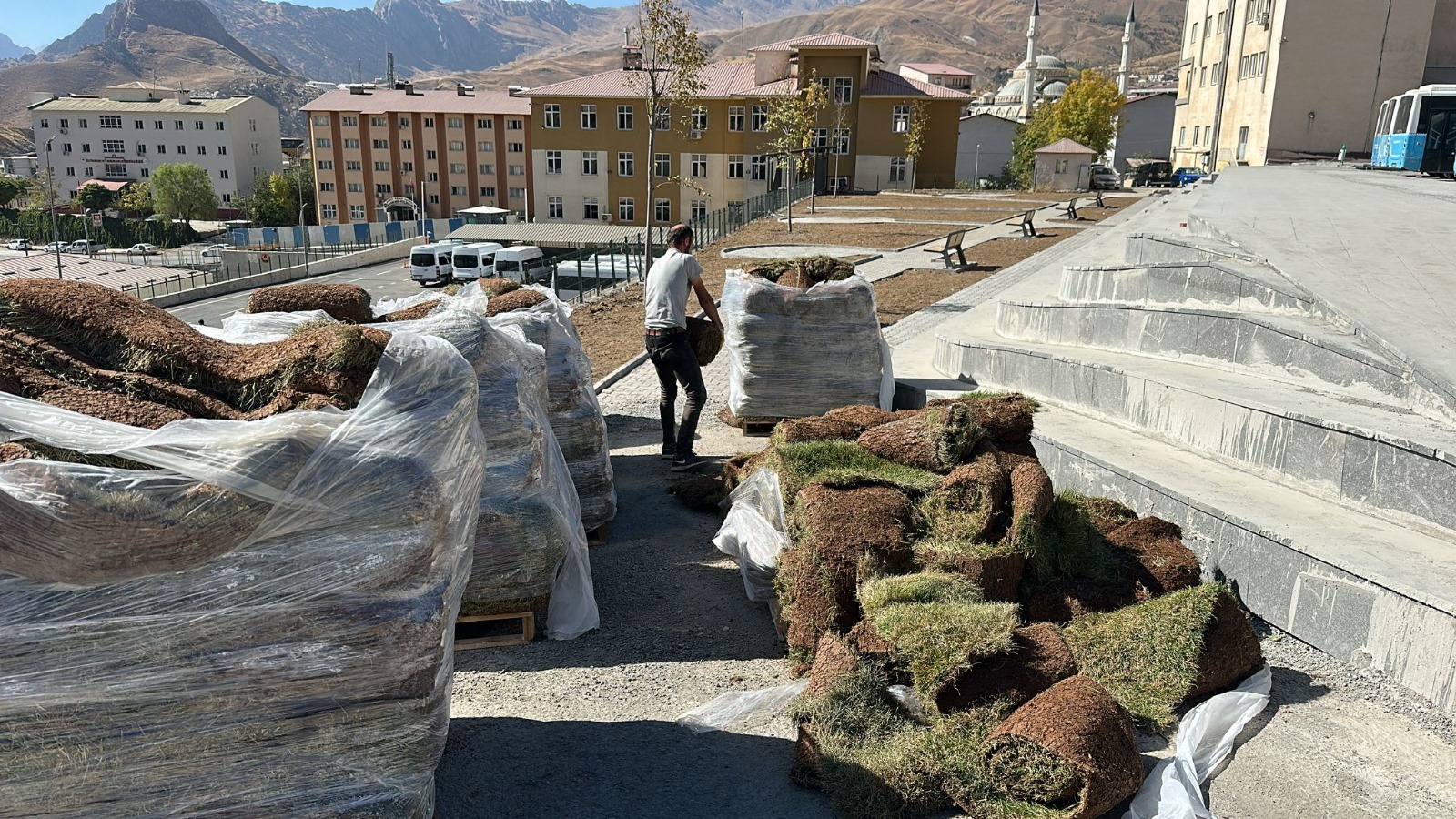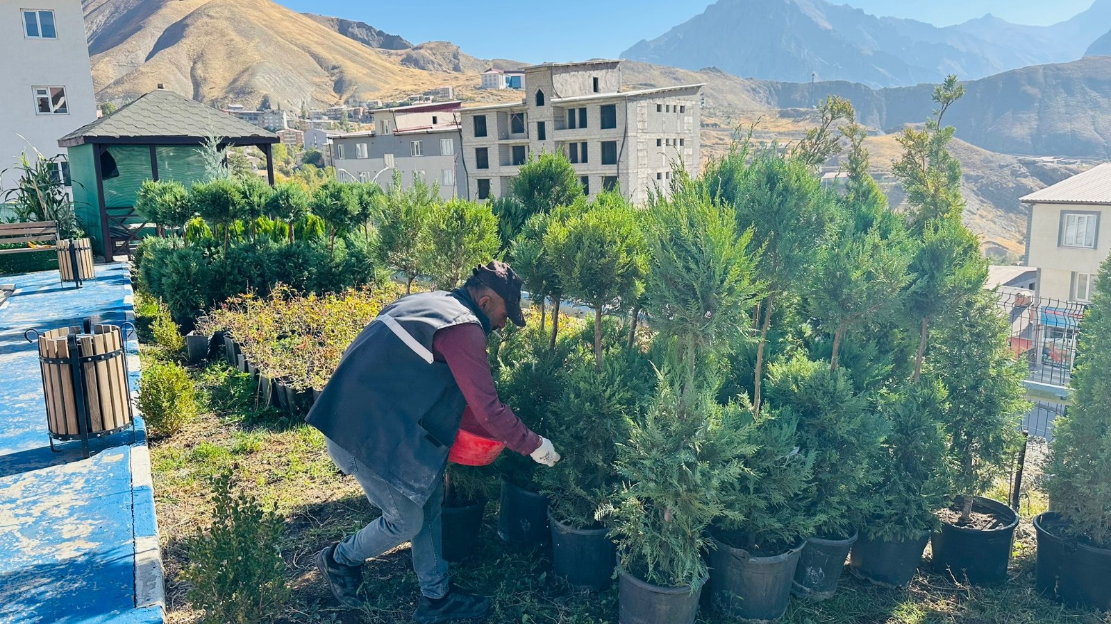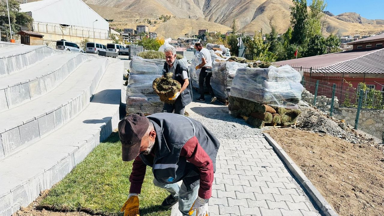 Hakkari Belediyesi Park ve Bahçeler Müdürlüğü, Sümbül Dağı manzarasına sahip yeni otogar ve servis alanı için çalışmalarını sürdürüyor.