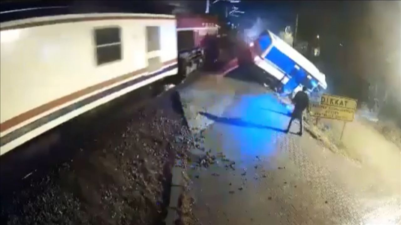 Karşıya geçemeyen minibüse, Kırıkkale-Kars seferini yapan yolcu treni çarptı.