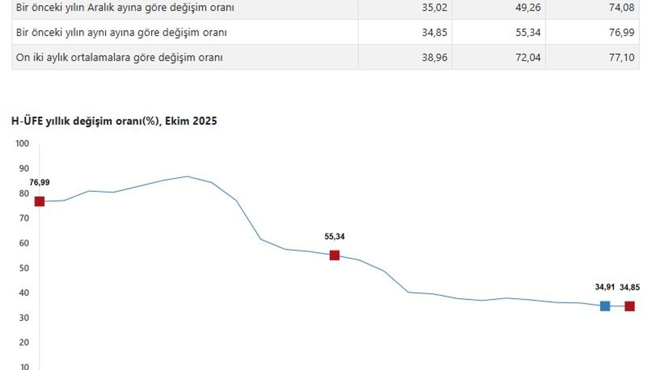 TÜİK, Ekim 2025 dönemine ilişkin hizmet üretici fiyat endeksi verilerini açıkladı. Buna göre, hizmet üretici fiyatları, ekim ayında bir önceki aya göre yüzde 0,19, bir önceki yılın aralık ayına göre yüzde 35,02, bir önceki yılın aynı ayına göre yüzde 34,85 ve 12 aylık ortalamalara göre yüzde 38,96 arttı.