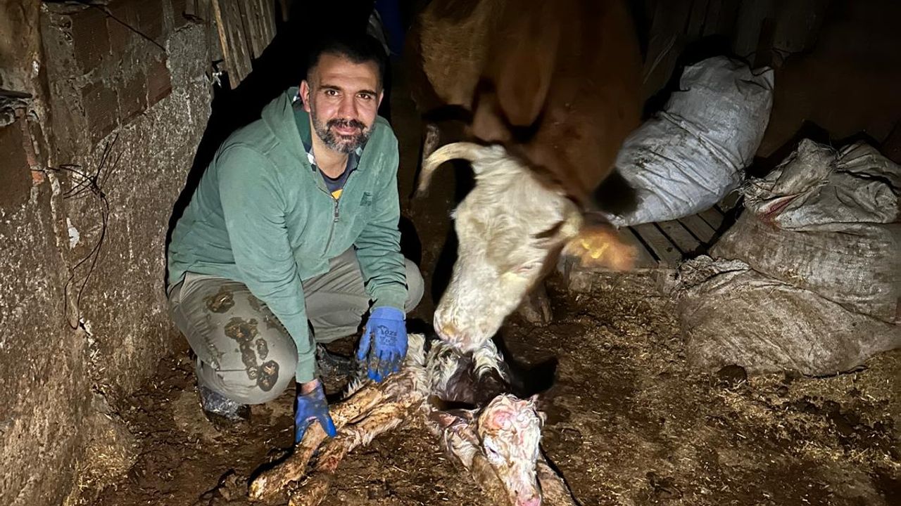 Kulp ilçesinin kırsal Şenyayla Mahallesi'nde dünyaya gelen buzağı, soğuktan etkilenince sahibi tarafından eve getirildi. Buzağı, soba kenarında ısıtılıp, fön makinesiyle kurutuldu. O anlar, cep telefonu kamerasıyla kaydedildi.