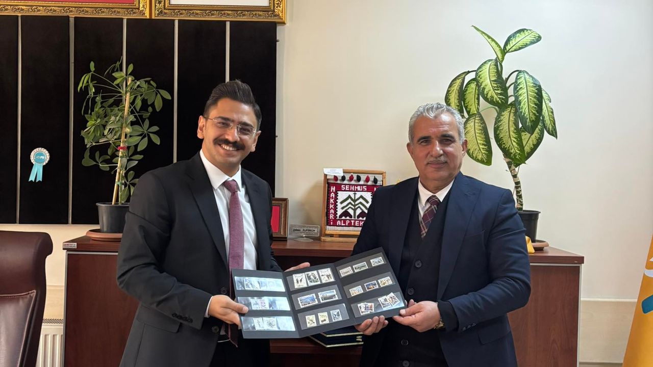 Ziyaretin anısına, PTT Başmüdürü Şehmus Alptekin, Vali Yardımcısı Mahmutoğlu’na özel bir pul seti hediye etti.
