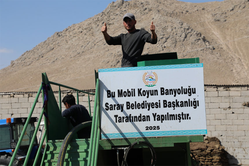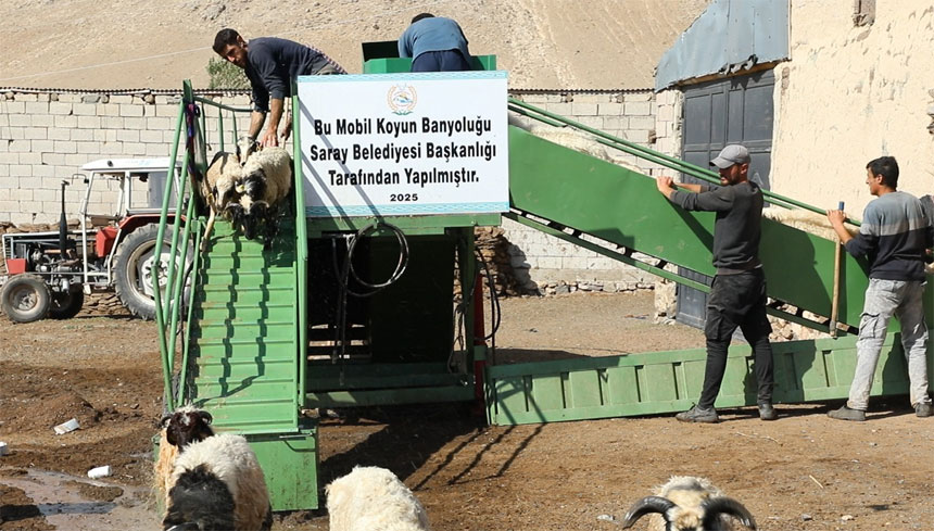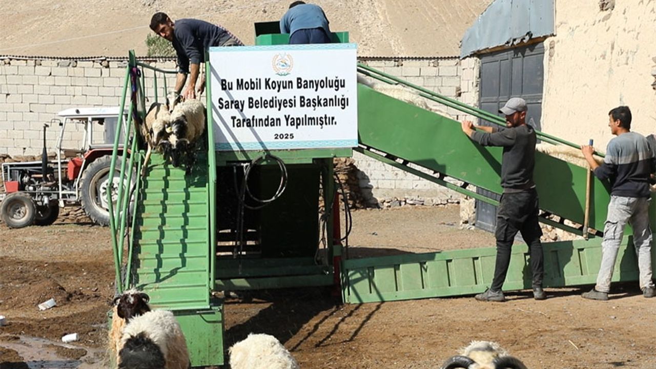Saray Belediyesi, küçükbaş hayvanların yıkanması ve ilaçlanması için mobil koyun banyoluğu hizmetini başlattı. Çiftçiler, “Eskiden kovalarla su taşıyorduk, şimdi modern bir sistemle çalışıyoruz” diyerek memnuniyetlerini dile getirdi.
