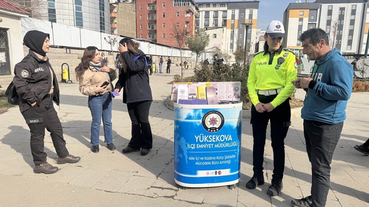 Burada broşür dağıtan ekipler, vatandaşları kadına yönelik şiddetle mücadele konusunda bilgilendirdi.