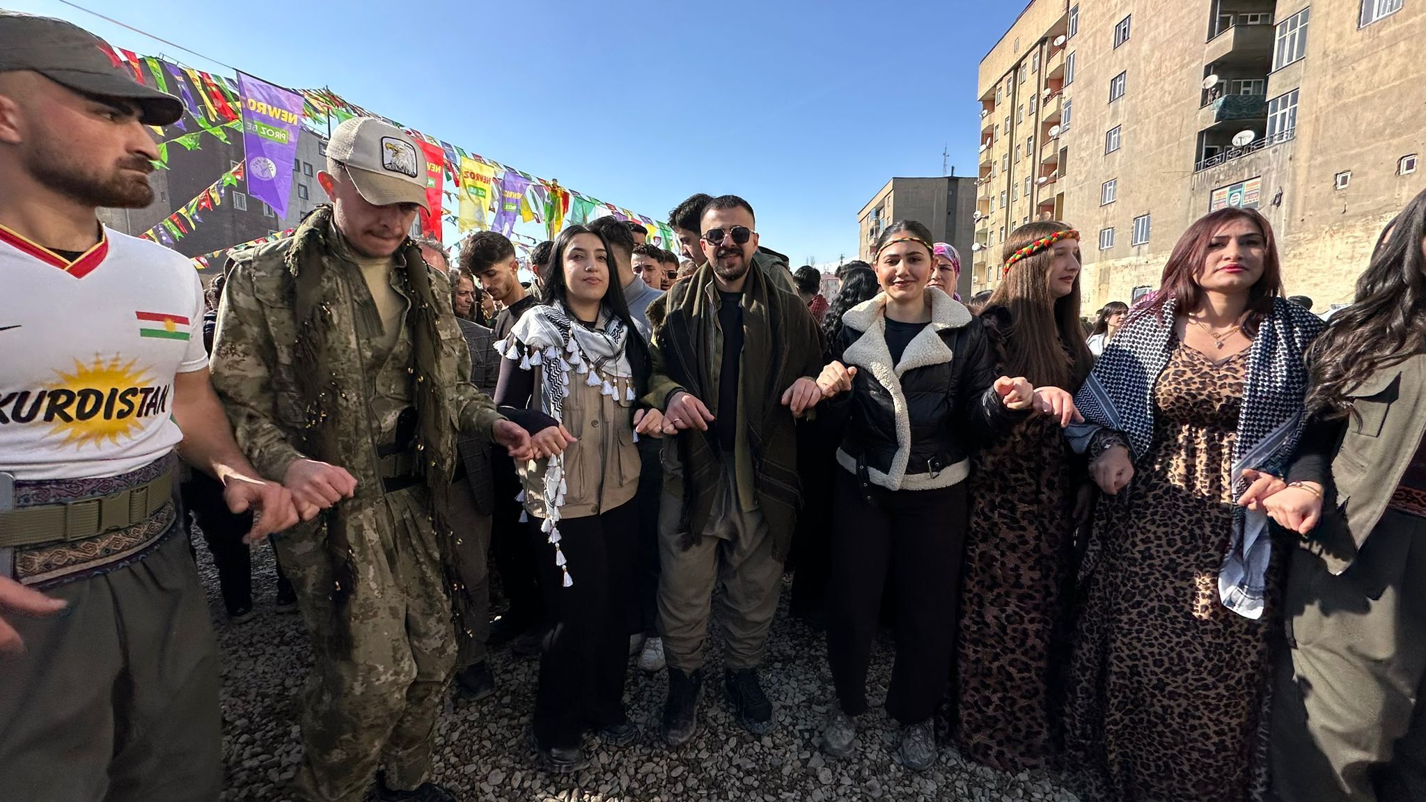 Newroz alanına akın eden vatandaşlar halaylar çekerek ve sloganlar eşliğinde kutlamalara katıldı. Renkli görüntülerin oluştuğu etkinlikte, özellikle gençlerin ve kadınların yoğunluğu dikkat çekti. Kutlama alanında kurulan sahnede müzik yayını yapılırken, katılımcılar uzun süre halay çekerek Newroz coşkusunu yaşadı.