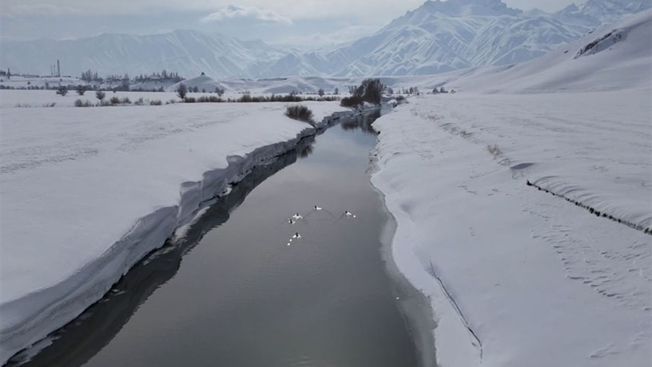 Yüksekova’da etkili olan dondurucu soğuklar nedeniyle Köprücük köyü yakınlarından geçen Büyükçay Deresi kısmen buz tuttu. Göçmen kuşların uğrak yerlerinden ve üreme noktalarından olan derede ördekler, su birikintilerinde yüzdü. Karlarla çevrili dere yatağındaki manzara, dronla görüntülendi.