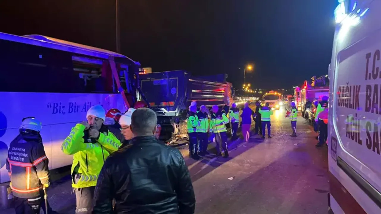 Kaza, saat 19.30 sıralarında Sapanca ilçesi Anadolu Otoyolu’nda meydana geldi. Ankara istikametine ilerleyen sürücüleri ve plakaları henüz öğrenilemeyen yolcu otobüsü, hafriyat kamyonu ile iki otomobil çarpıştı.